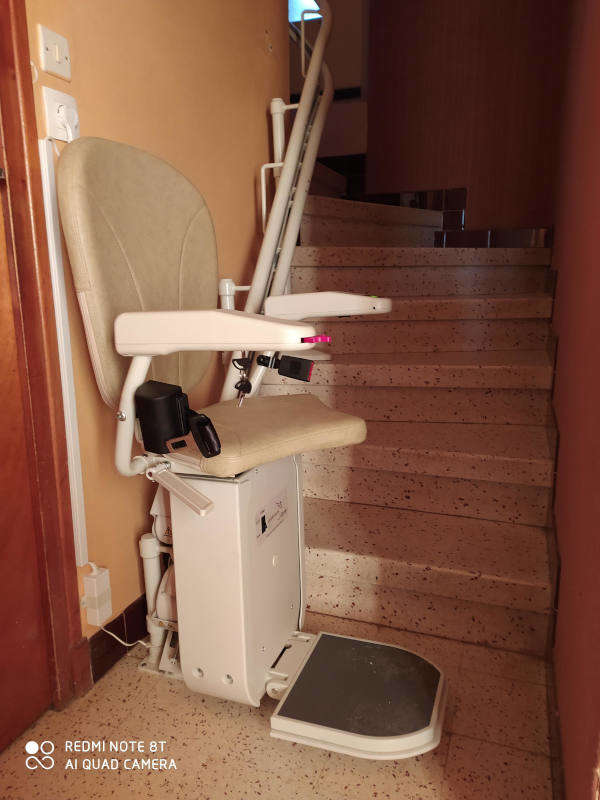 Le choix s’est porté sur un monte-escalier sur-mesure, modèle Curve du fabricant Platinum.