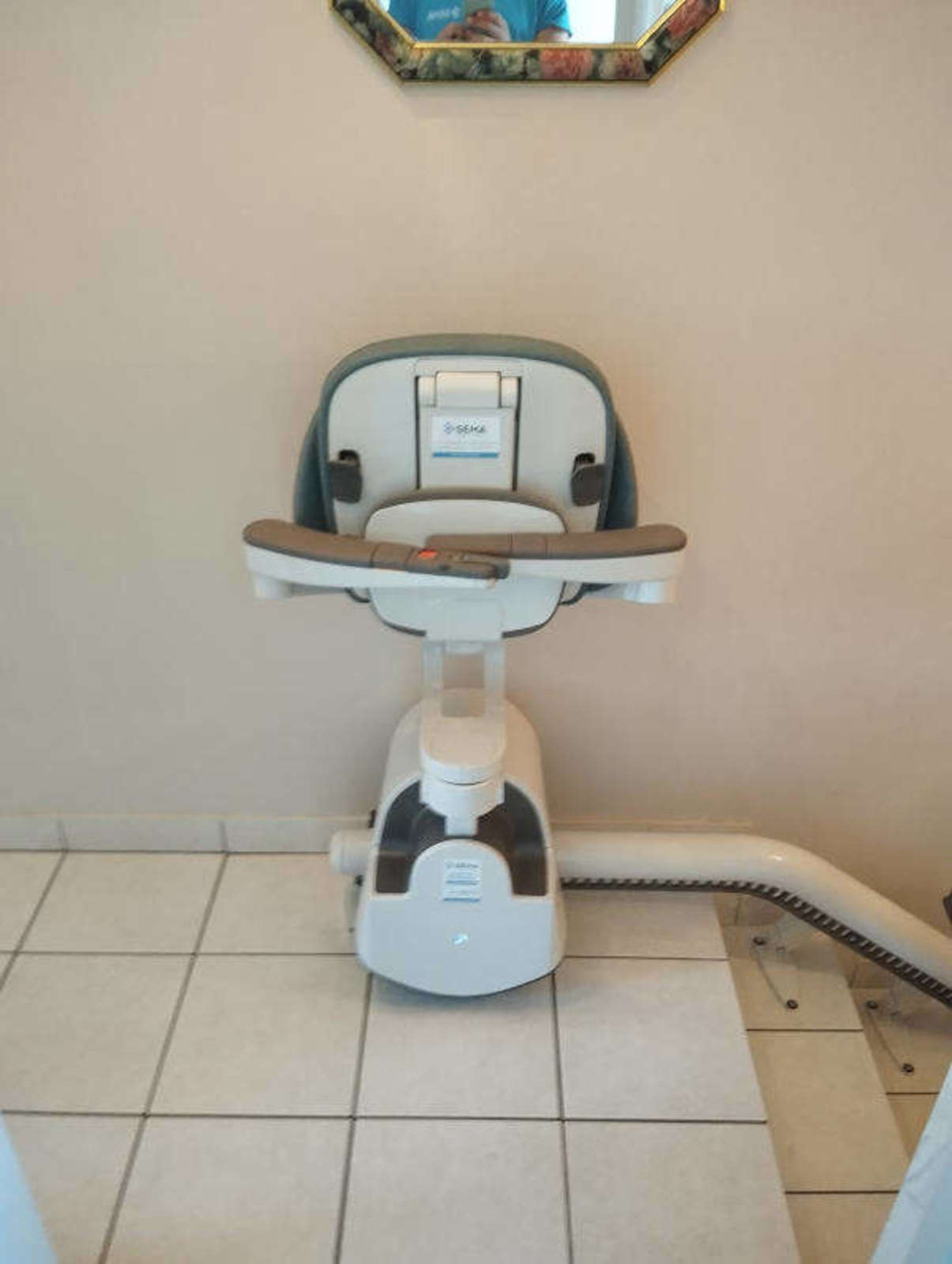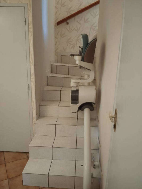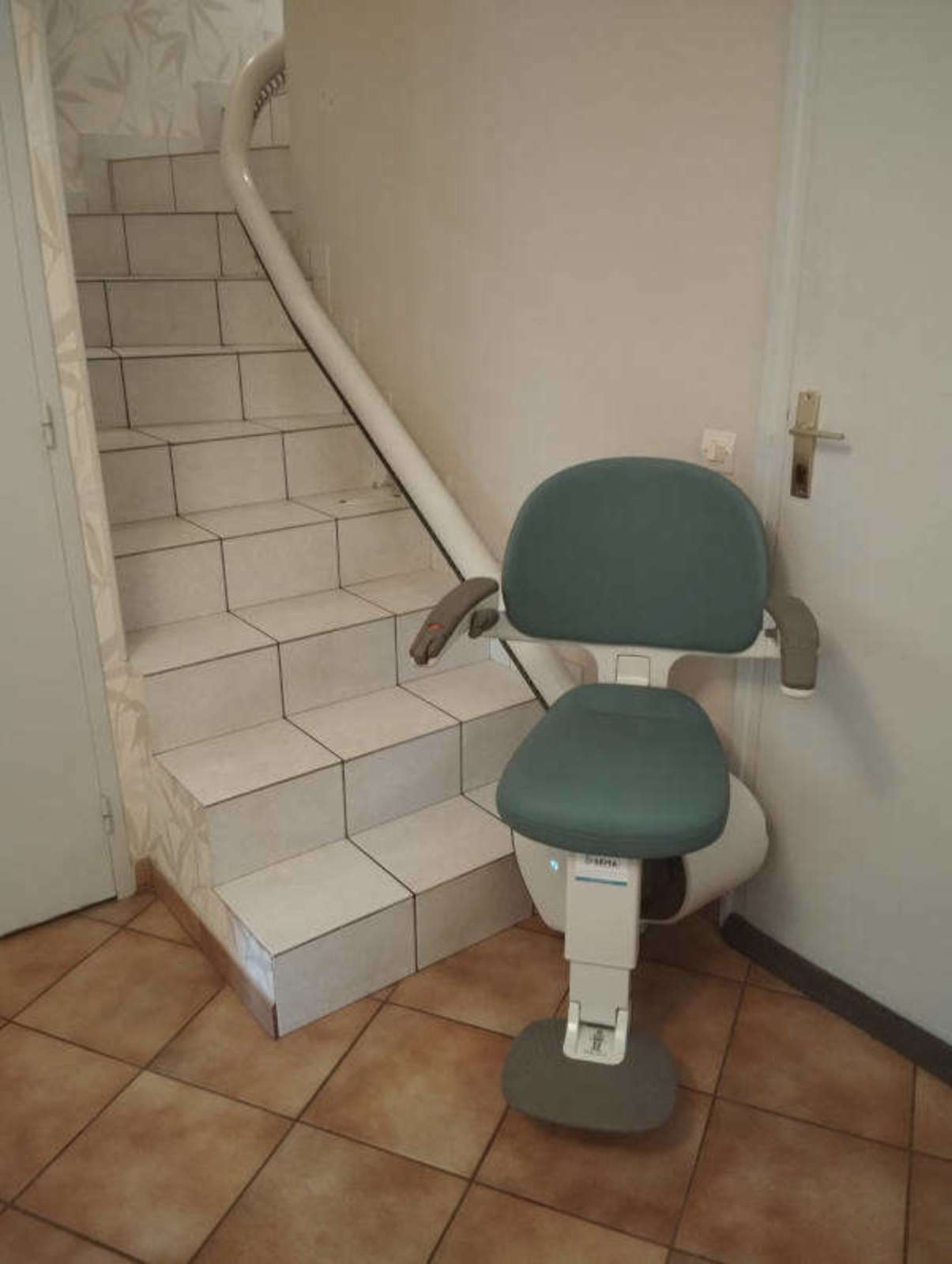 Afin de pouvoir conserver leur autonomie dans leur habitat, ce ménage a fait installer par l’équipe SÉMA, une chaise monte escalier aux mesures de cet escalier en béton carrelé, pour accèder facilement des pièces de vies à la partie nuit.