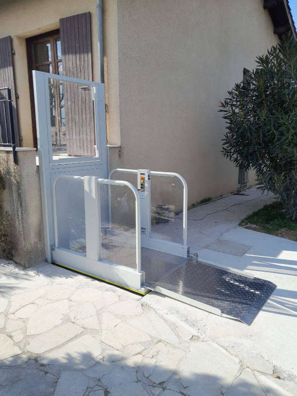 La plateforme verticale ici présente, a un accès dit "opposé", offrant une entrée d'un côté et une sortie en face.
