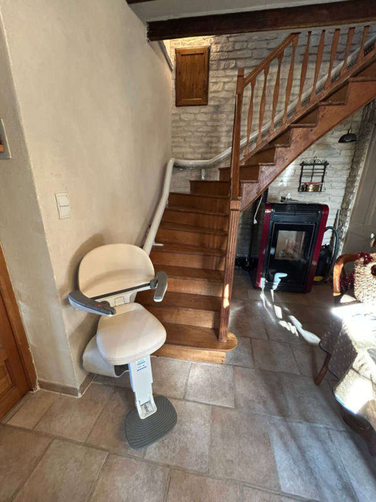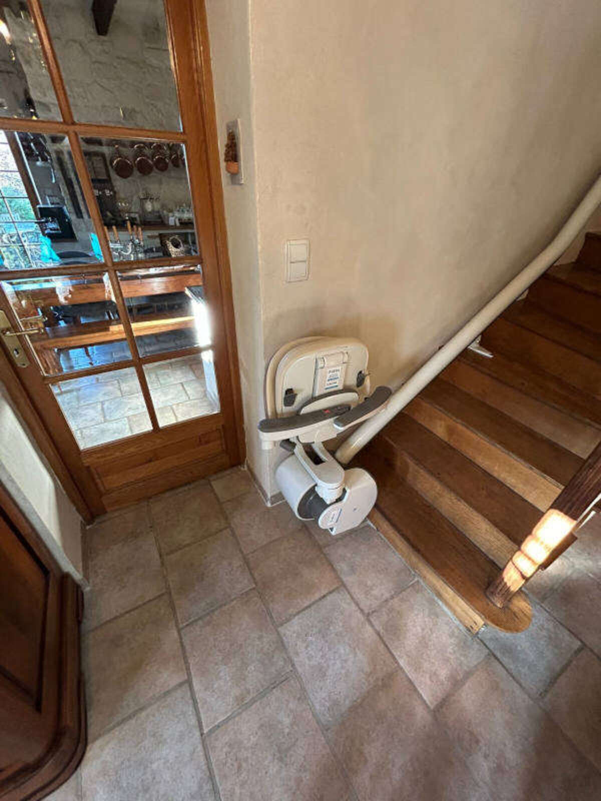 Pour rendre sa maison individuelle plus accessible et confortable, Monsieur a choisi notre chaise monte‑escaliers tournante FLOW X, alliant sécurité, design et praticité.