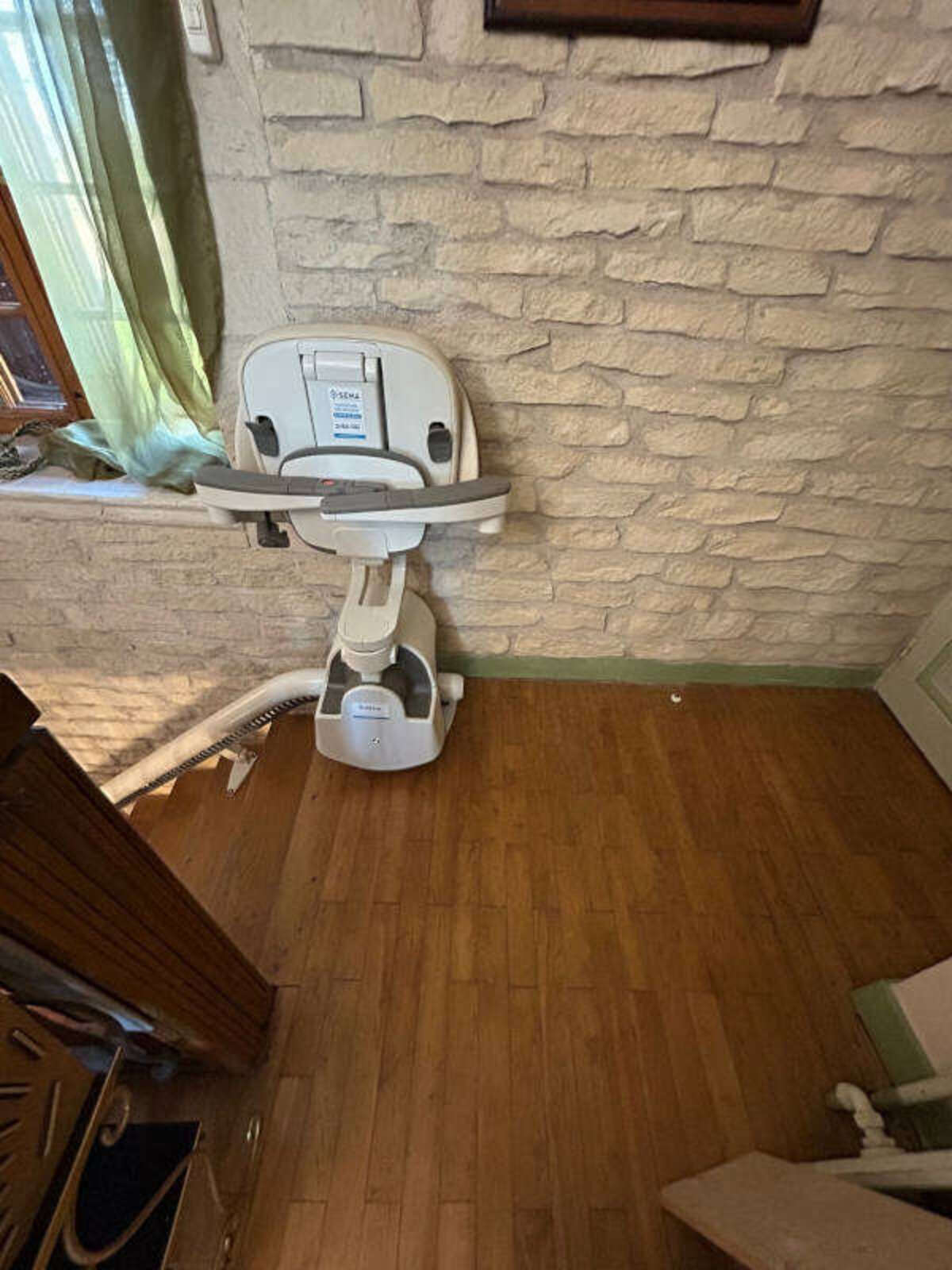 * Repliée, la chaise monte-charge ne gêne jamais la circulation, combinant sécurité, confort et élégance pour améliorer le quotidien de ses utilisateurs.