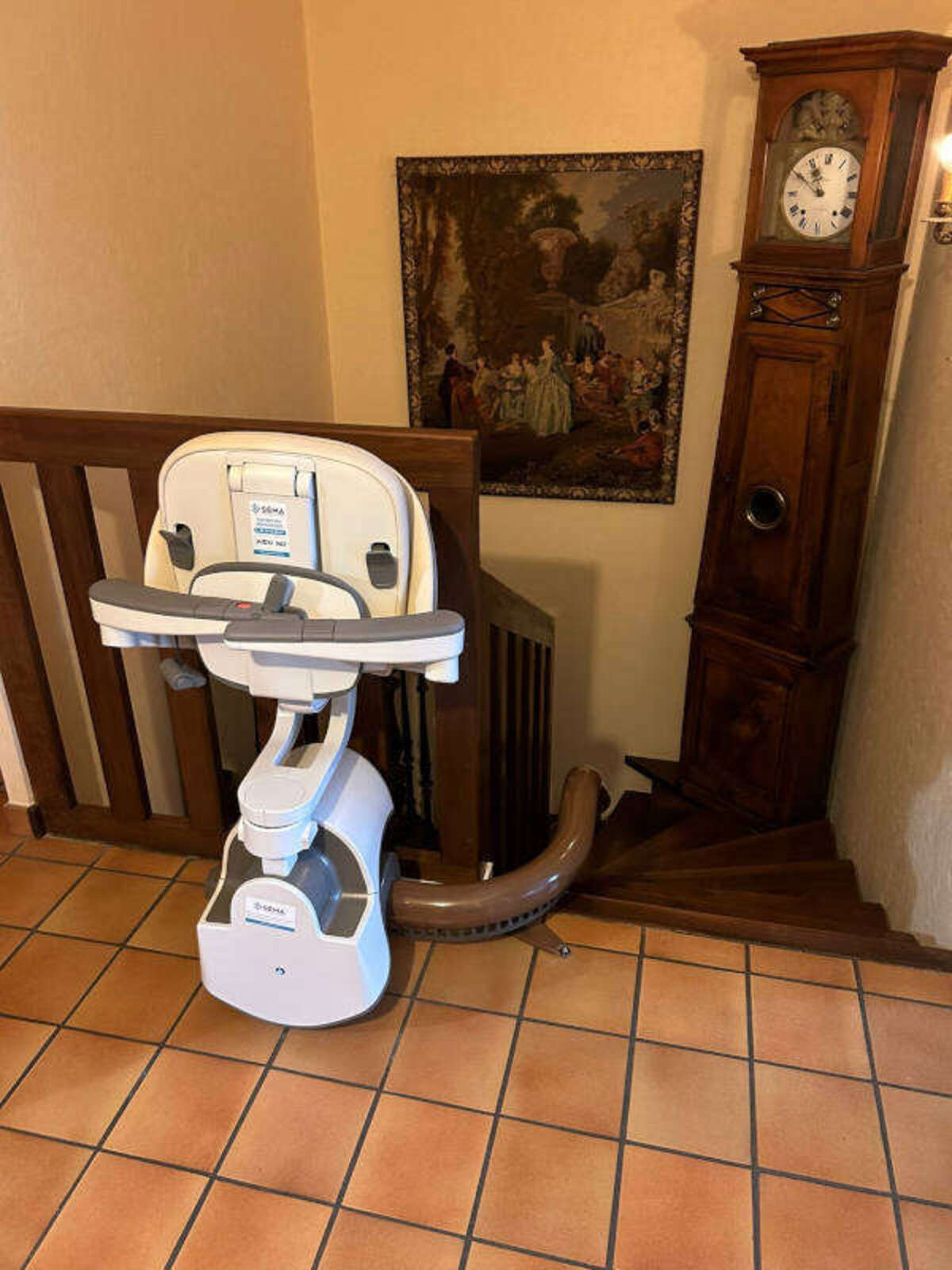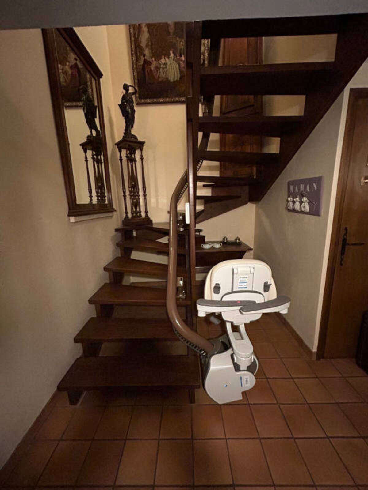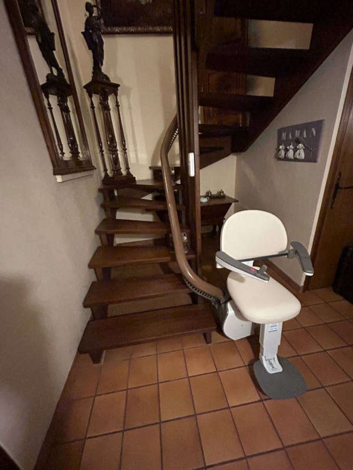 Grâce à cette installation, le couple bénéficie désormais d’un accès sûr et confortable à l’étage, tout en conservant intacte leur intérieur et leurs objets décoratifs.