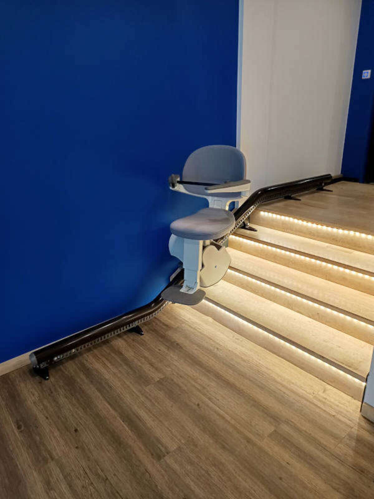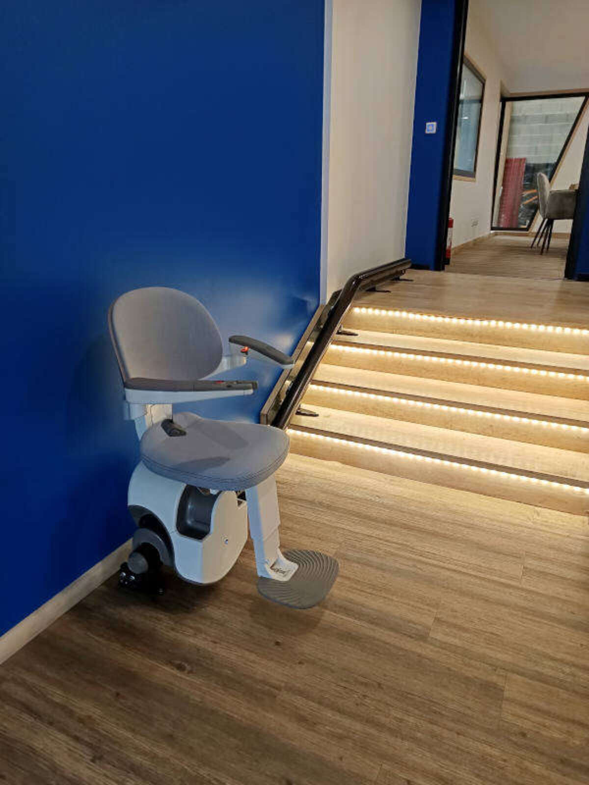 L’équipe Élévateur SÉMA a installé le modèle de chaise monte escalier sur-mesure FLOW X du fabricant Access BDD dans son showroom de Genas.