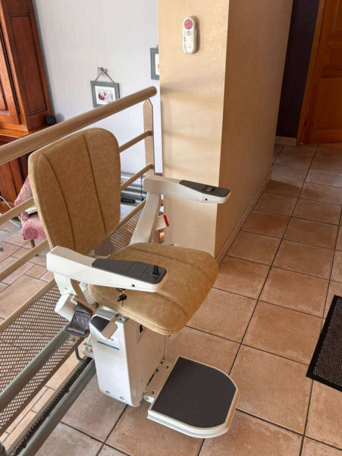 Avec la présence d’un chauffage au sol, en haut comme en bas, notre équipe a procédé à une installation précise et sur-mesure du fauteuil élévateur, modèle CURVE de PLATINUM.